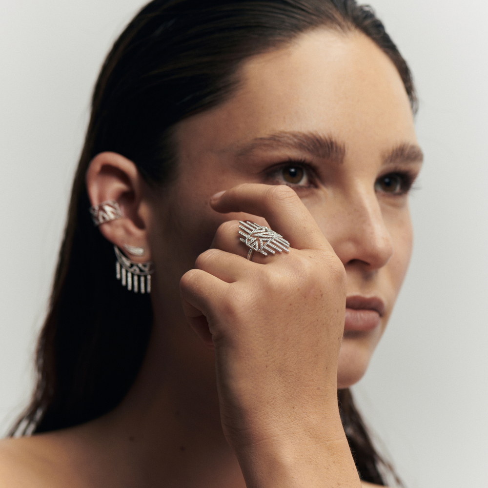 Reference: BA24051100 Collection: Haxo Nava Jewels are Made in France. Metal: 18 carats gold - 750/1000 Weight: 7 grams. 136 diamonds - round modern. Total diamonds weight: 0.85 carat. Diamonds color: E Diamonds quality: VS Nava Jewels are unique. Weights, sizes and caratage may vary slightly from one creation to another. Available: white gold - yellow gold - rose gold. |
